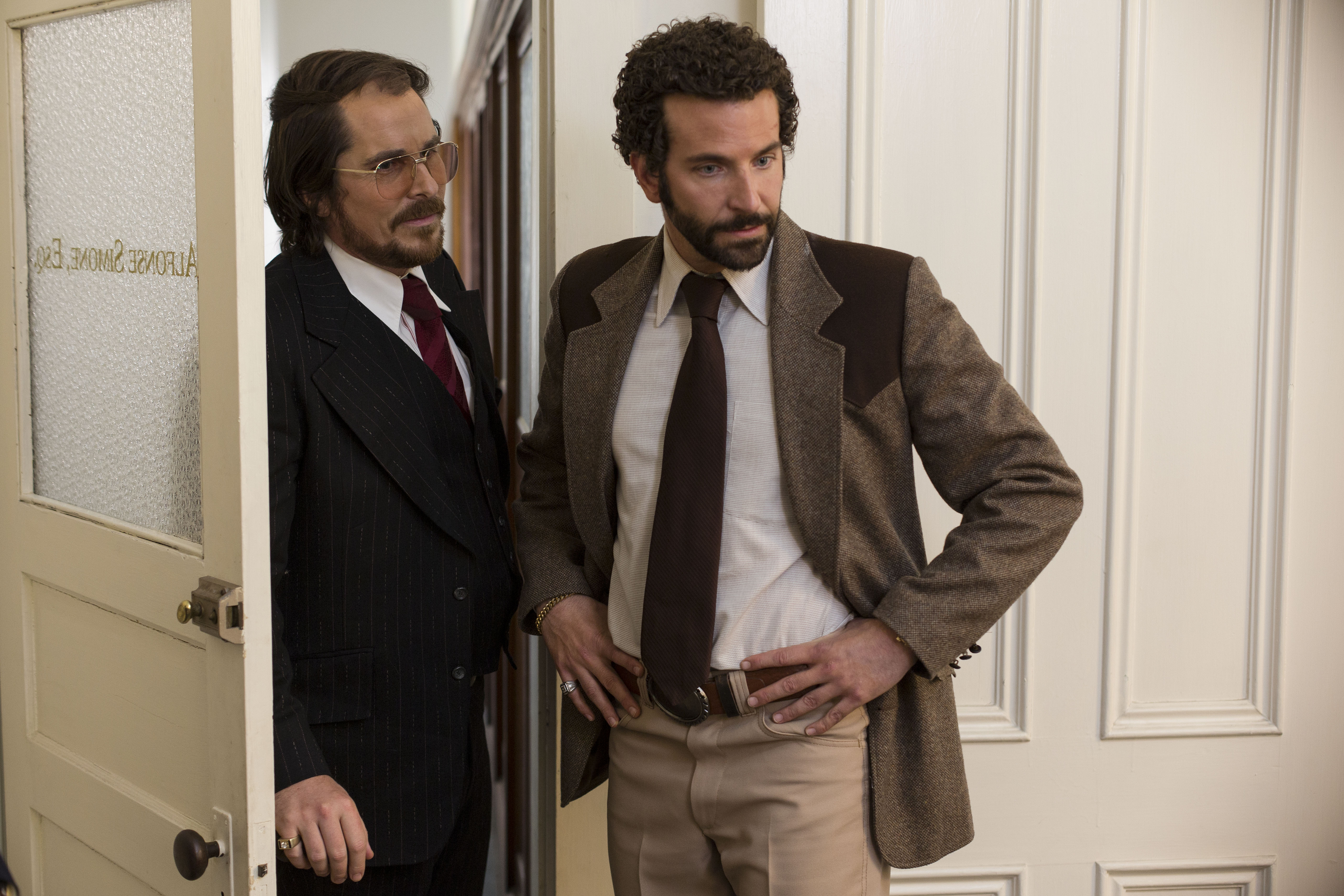 Best Picture, Best Actor (Christian Bale), Best Supporting Actor (Bradley Cooper) Best Supporting Actress (Jennifer Lawrence) Best Acting Ensemble, Best Director (David O. Russell) Best Original Screenplay (Eric Singer, David O. Russell), Best Editing (Alan Baumgarten, Jay Cassidy, Crispin Struthers), Best Costume Design (Michael Wilkinson), Best Makeup, Best Comedy, Best Actor in a Comedy (Christian Bale), Best Actress in a Comedy (Amy Adams)