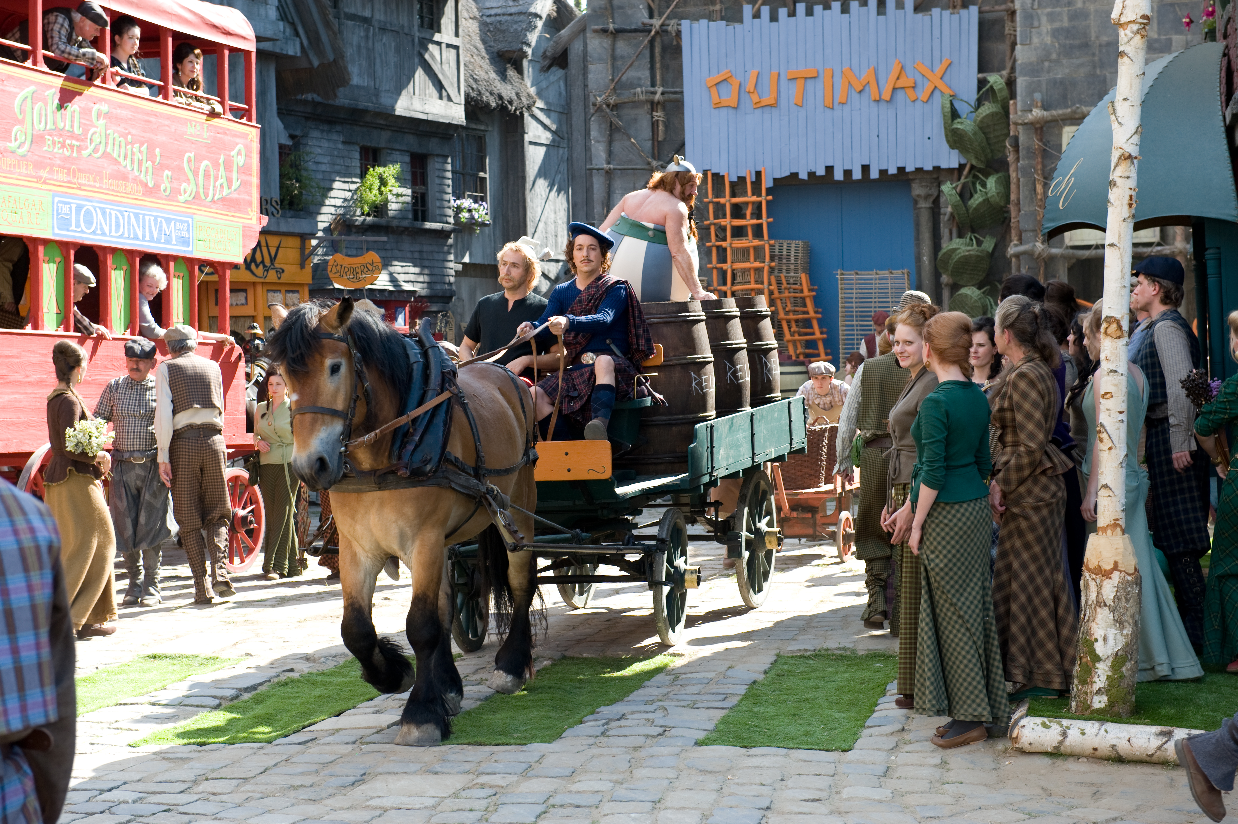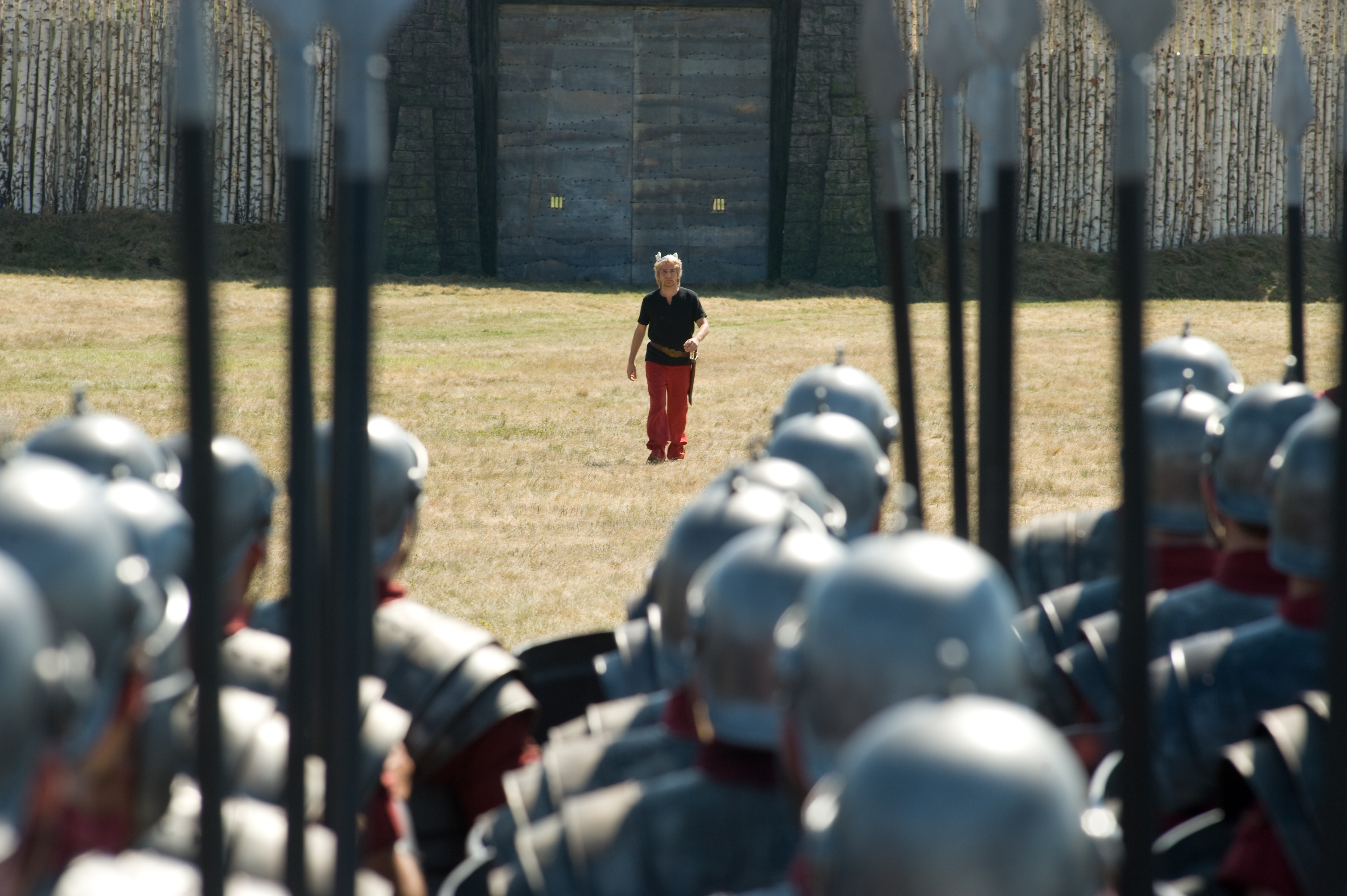 Baer och Gérard Depardieu gör som vanligt Obelix när de två gallerna måste korsa den brittiska kanalen. I en viktig biroll syns även den franska superstjärnan Catherine Deneuve.