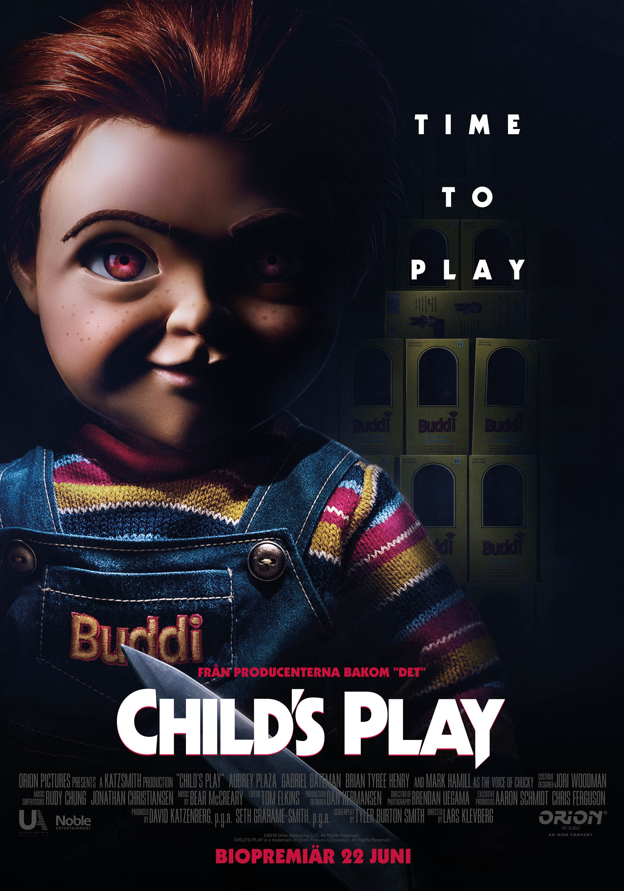 Från producenterna bakom ”DET” kommer CHILD’S PLAY, en helt ny version av den klassiska skräckberättelsen om den onda dockan Chucky, nu med Mark Hamill som gör rösten. När Karen (Aubrey Plaza) köper den högteknologiska Buddi-dockan till sin son Andy (Gabriel Bateman) i födelsedagspresent bjuder hon omedvetet in ondska i sitt hem. Nu gäller det bara för Andy att få de vuxna att lyssna, så att de kan stoppa dockan innan det är för sent.