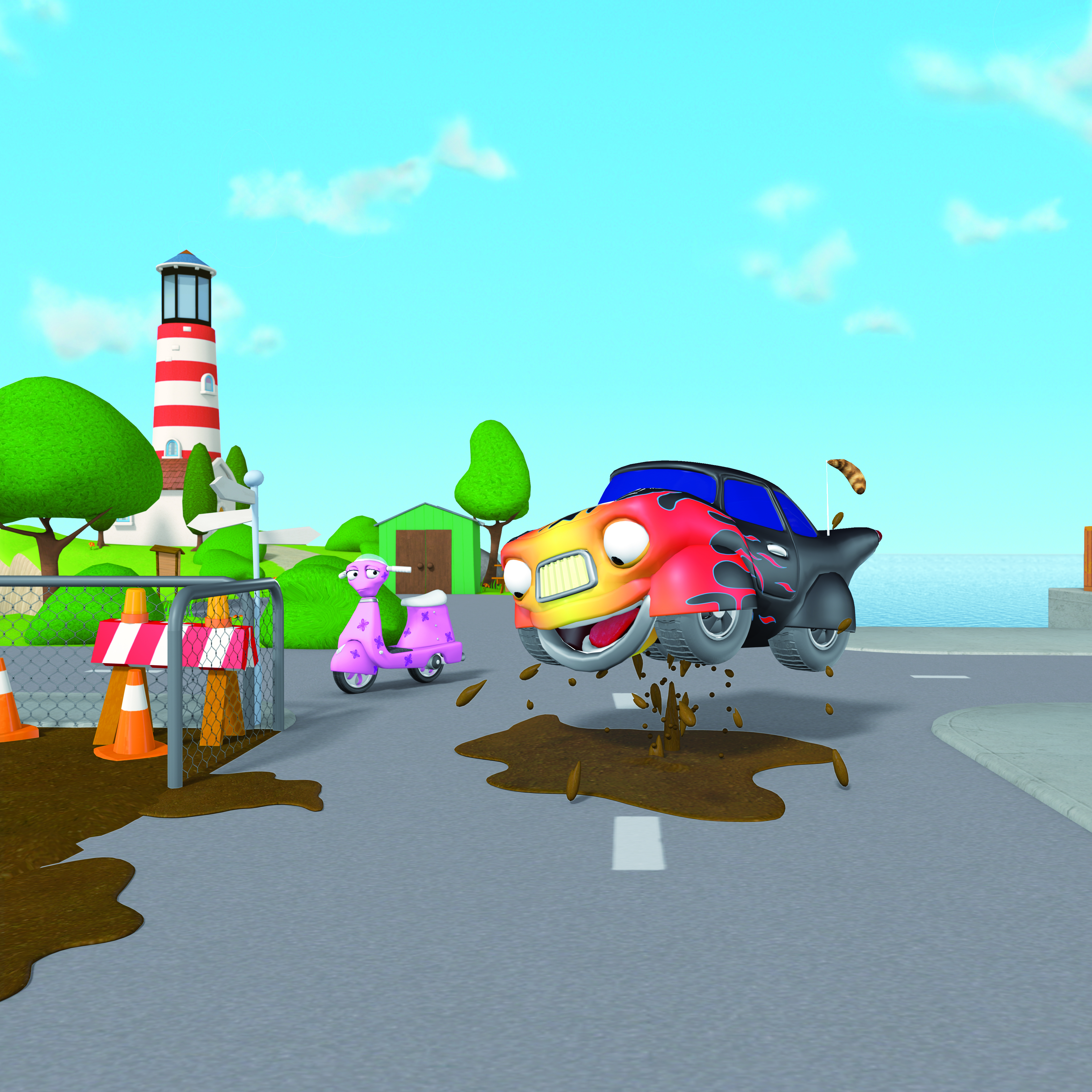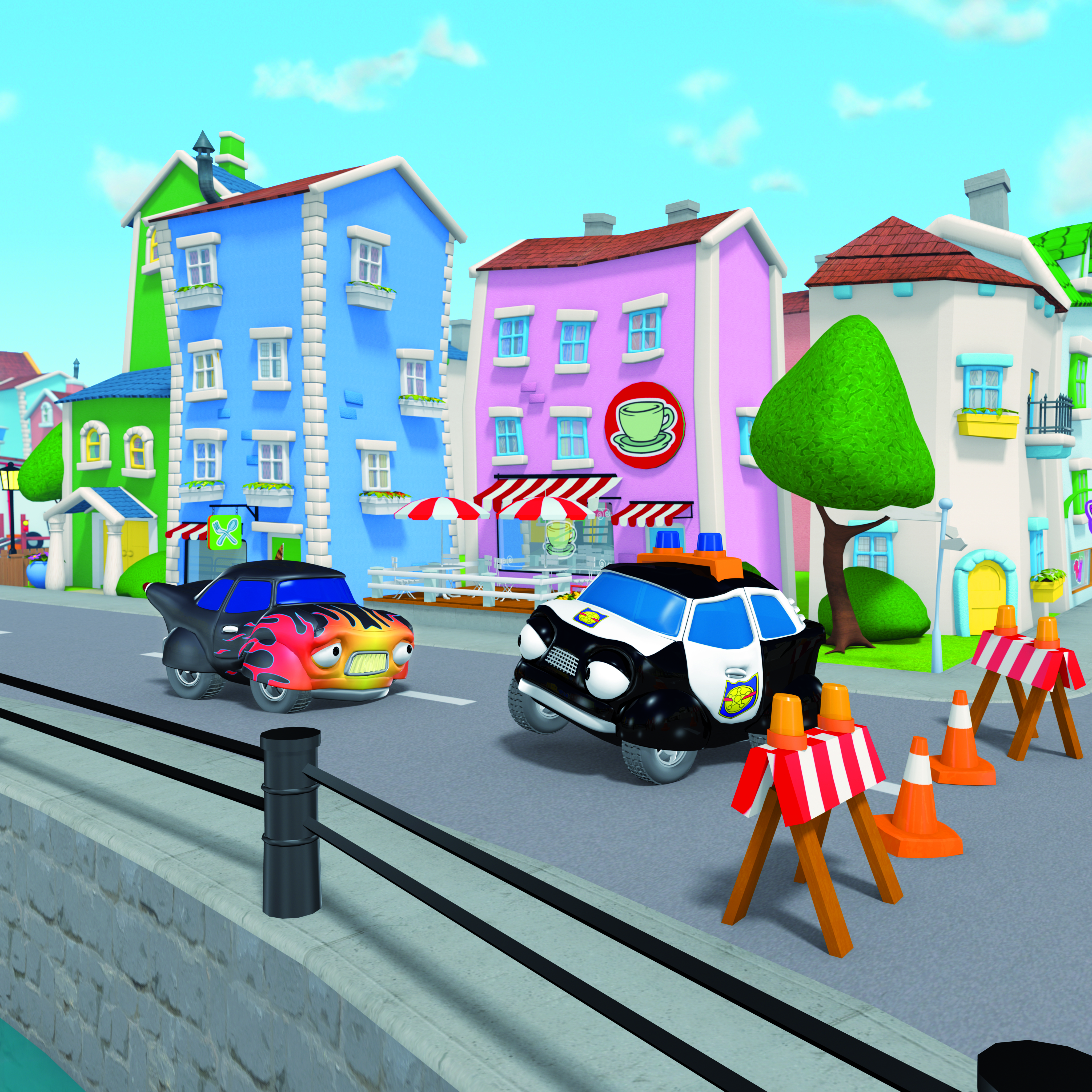 Följ med på fantastiska och spännande äventyr tillsammans med vännerna i staden. Möt Palle Polisbil och Bella Brandbil när de hjälper invånarna i staden att hitta tjuvar, att släcka bränder och lösa något av de många mysterier som inträffar i den annars så lugna staden. Du får också lära känna Olyckskorpen, den mest otursförföljda invånaren i hela staden.
