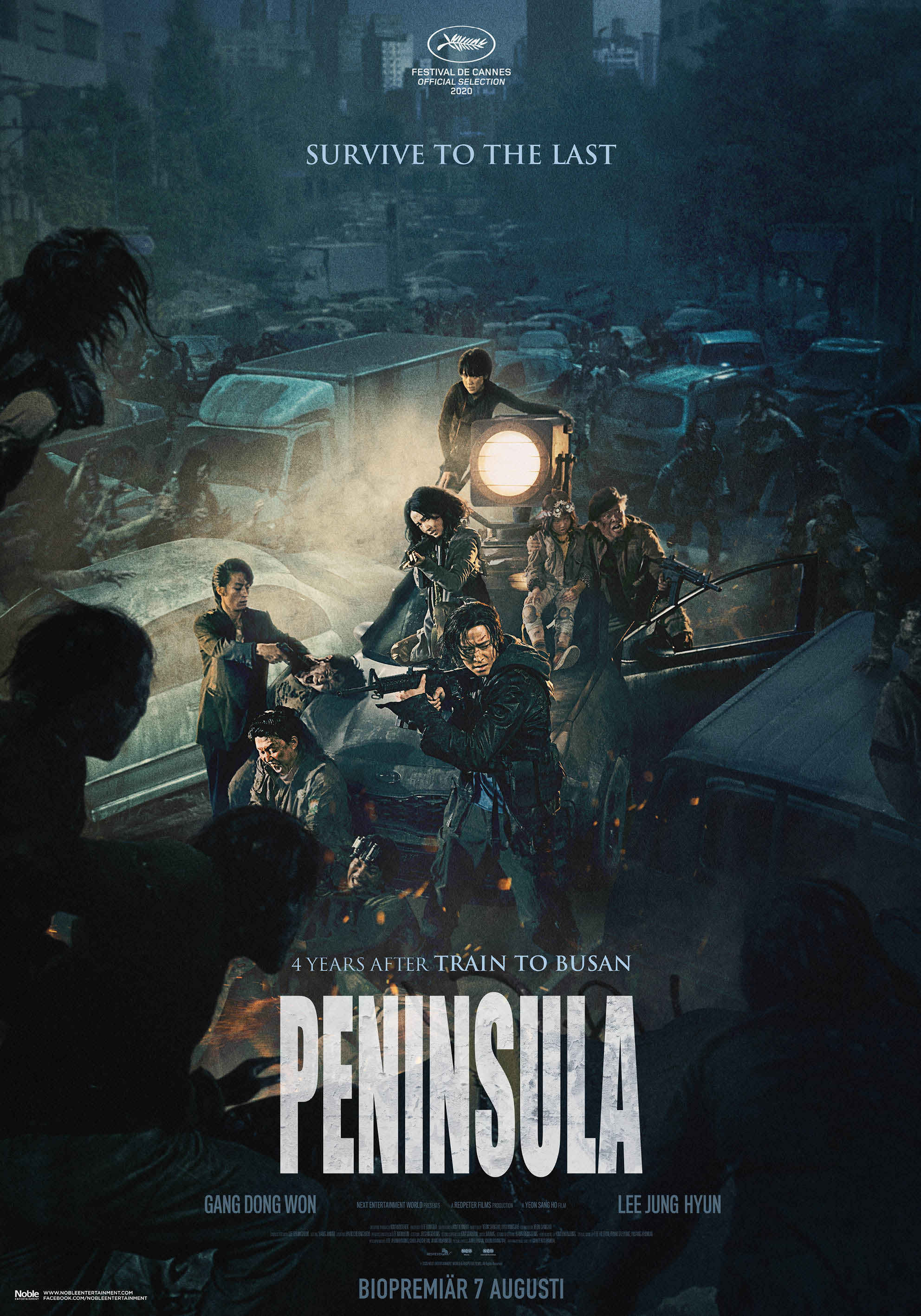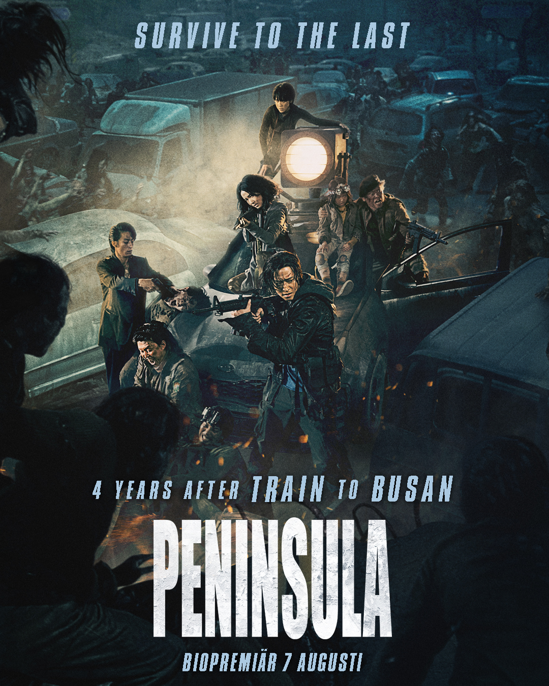PENINSULA äger rum fyra år efter zombieutbrottet i TRAIN TO BUSAN. Den koreanska halvön är förstörd och Jung-seok, en före detta soldat som har lyckats fly utomlands, får ett hemligt uppdrag att återvända. När han och hans team oväntat möter överlevande börjar den allra sista kampen att fly från den övergivna halvön igen.