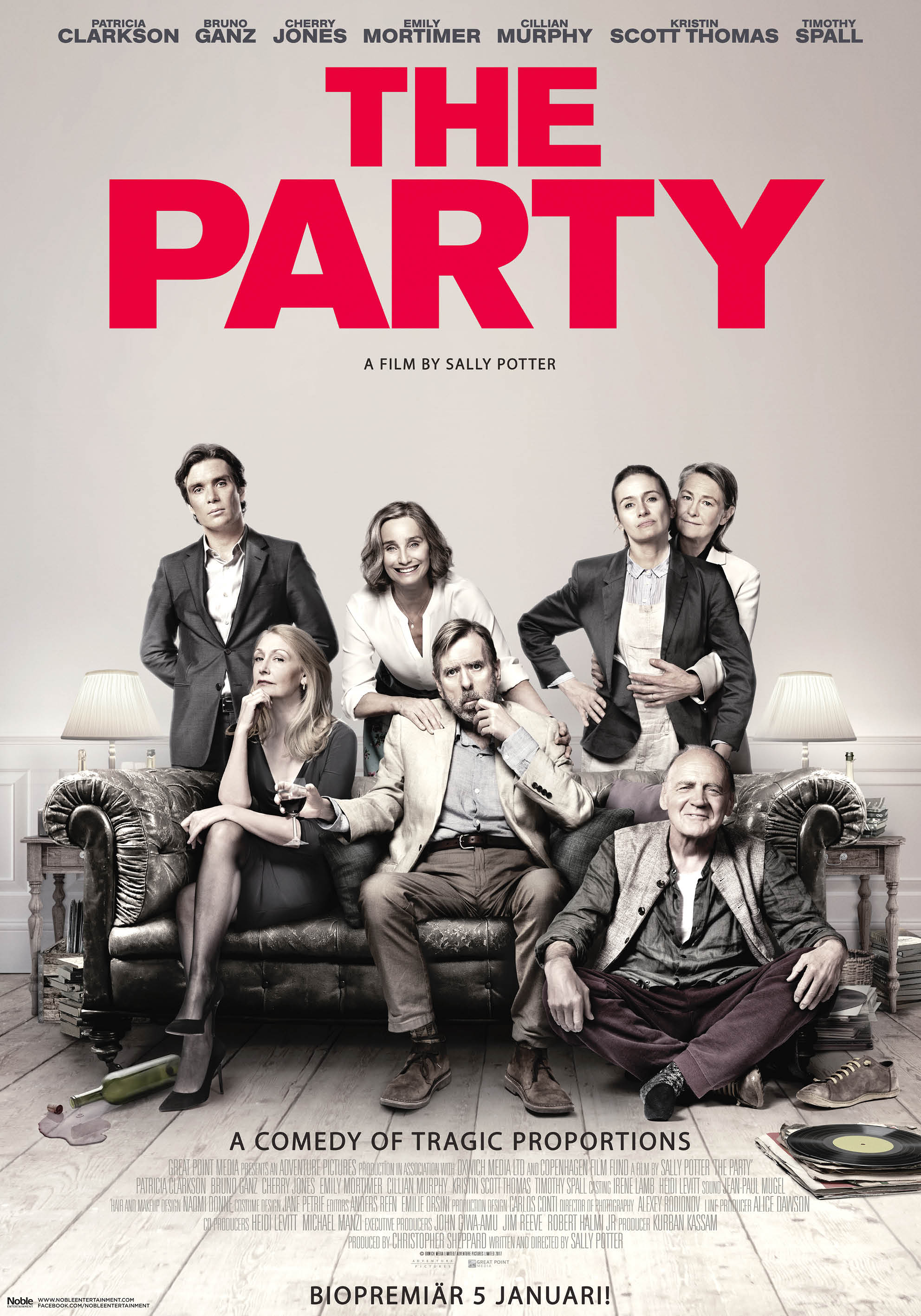 THE PARTY är regisserad av prisbelönade Sally Potter och rollerna spelas av Kristin Scott Thomas, Patricia Clarkson, Bruno Ganz, Cherry Jones, Emily Mortimer, Cillian Murphy och Timothy Spall.